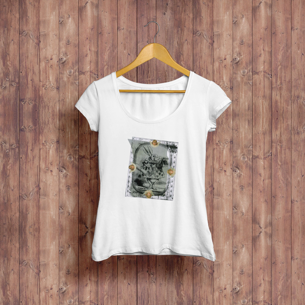Disponible en remeras unisex de corte recto y entalladas con cuello en forma de U.